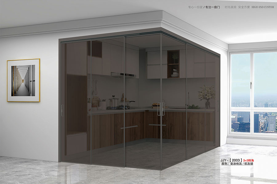 家庭使用:厨房、书房窄边铝框推拉门,浴室需双层夹胶玻璃防潮防雾。